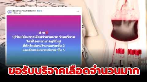 ด่วน! รพ.บุรีรัมย์ขอรับบริจาคเลือดจำนวนมาก พร้อมบอกจุดรับบริจาคเลือด 2 แห่ง
