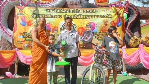 สีสันวันเด็ก!วัดเขาพระทองเมืองคอน แข่งแข่งเสียงงูร้อง รับปีมะเส็ง