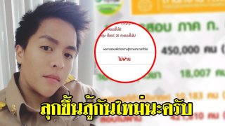 ภายหลังจากผลสอบ ก.พ. (ภาค ก) ประจำปี 2561 ได้ประกาศผลออกมาเป็นที่เรียบร้อยแล้วซึ่งปีนี้มีผู้สมัครมากถึง 450,000 คน โดยมีผู้สอบผ่านการวัดความรู้ความสามารถทั่วไป จํานวนทั้งสิ้น 18,007 คน ก็ทำให้หลายคนที่ไม่ผ่านต่างก็รู้สึกท้อกับผลที่ประกาศออกมา ล่าสุด ในโลกออนไลน์ได้มีการแชร์ข้อความให้กำลังใจดีๆ จาก นายณัฐกร ชุ่มอินทรจักร์ หรือ บูม ปลัดหนุ่มสุดหล่อ ของ อ.ขุนตาล จ.เชียงราย ที่ได้สอบเข้ามารับตำแหน่.. ดูเพิ่ม
