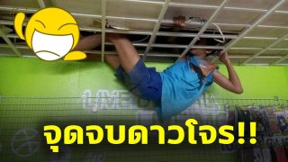 จุดจบดาวโจร!! ปีนฝ้าเพดานขโมยของร้านมือถือ ลงมาเกิดหัวติดตะแกรงเหล็กฝ้าเอาออกไม่ได้ จนถึงเช้า