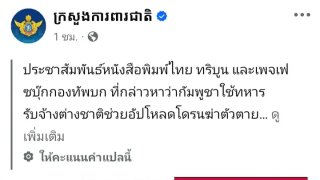 กลาโหมกัมพูชา ยืนยัน ข้อกล่าวหาจากไทย ที่ระบุว่ากัมพูชาใช้ทหารรับจ้างเปิดปฏิบัติการโดรน เป็นเรื่องเท็จ