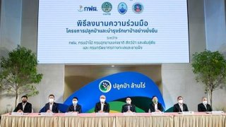 เมื่อวันที่ 20 ตุลาคม 2564 ที่ผ่านมา ทางกระทรวงทรัพยากรธรรมชาติและสิ่งแวดล้อม (ทส.) โดยนายวราวุธ ศิลปอาชา รัฐมนตรีว่าการกระทรวงทรัพยากรธรรมชาติและสิ่งแวดล้อม (รมว.ทส.) ร่วมพิธี “ประกาศนโยบายมุ่งสู่ความเป็นกลางทางคาร์บอน (EGAT Carbon Neutrality) และเป็นสักขีพยานในพิธีลงนามความร่วมมือโครงการปลูกป่าล้านไร่อย่างมีส่วนร่วม” พร้อมปาฐกถาพิเศษ เรื่อง “สิ่งแวดล้อมกับความยั่งยืน เพื่อโลก .. ดูเพิ่ม