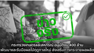 ข่าวจริง กระทรวงเกษตรและสหกรณ์ อนุมัติงบ 400 ล้าน พัฒนาและรับมือผลไม้ฤดูกาลใหม่ ส่งเสริมการกระจายผลผลิต