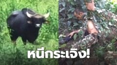 หนีกระเจิง! "กระทิงป่าบุกชน" ไล่ขวิด เจ้าหน้าที่พิทักษ์ป่า หน่วยงานเร่งนำตัวส่ง รพ.