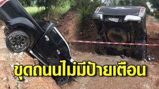 อบต.จ้างเหมาทำถนนขาด ขุดถนนไม่มีสัญญาณเตือน รถกระบะพุ่งตกเสียชีวิต