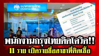 พนักงานกรุงไทยติดโควิด!! 11 ราย เปิดรายชื่อสาขาที่ติดเชื้อ