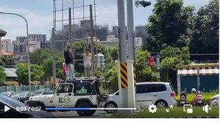 สื่อนอกรายงานว่า "ภาพที่กำลังเป็นไวรัลในตอนนี้ เกิดขึ้นที่เมืองโถวเฟิน เทศมณฑลเหมียวลี่ ประเทศจีน ซึ่งมีชายคนหนึ่งถูกมัดติดไว้กับท่อเหล็ก บนหลังคารถจี๊ปคันหนึ่ง ที่ขับวนไปมารอบเมือง หลายคนคิดว่าเป็นเรื่องตลก... แต่บางคนก็โทรหาตำรวจ..." ตำรวจกล่าวว่า "พฤติกรรมนี้ละเมิดกฎข้อบังคับ การจัดการจราจรทางบก" และ "ผู้ขับขี่จะถูกปรับเป็นเงิน มากกว่า 3,000 หยวน และ น้อยกว่า 18,000 หยวน" พร้อมเตือนว่า "ห้ามปร.. ดูเพิ่ม