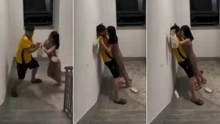 สาวรุกหนักผลัก พนักงานส่งอาหารติดกำแพง ก่อนจูบไม่ยั้ง