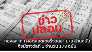 ข่าวปลอม‼️ กองสลากฯ ผลิตลอตเตอรี่งวดละ 178 ล้านฉบับ จึงมีรางวัลที่ 1 จำนวน 178 ฉบับ