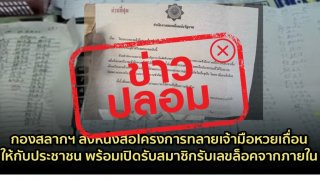 ข่าวปลอม ‼️ กองสลากฯ ส่งหนังสือโครงการทลายเจ้ามือหวยเถื่อนให้กับประชาชน พร้อมเปิดรับสมาชิกรับเลขล็อคจากภายใน