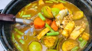แกงใตปลา แกงใต้ เด็กเหนือทำ แต่ก่อนคิดตลอดว่า เมื่อไหร่จะได้กินแกงใตปลา เห็นแล้วทรงมันทำยากจิงๆ พอเริ่มครูพักลักจำ ทำๆ มัวๆ มันก็ทำได้เฉยเลย มาเริ่มทำกันเลยจ้า เตรียมวัตถุดิบกัน 1. เครื่องแกง เราเลือกใช้แบบสำเร็จรูปง่ายดี 😌2. ผัก - มะเขือเปาะ - ถั่วฝักยาว - หน่อไม้ - ฝักทอง หรือมัน หรือทั้งคู่ ตามชอบ3. ปลา ปลาทู หรือปลาซาบะก็ได้ ย่างแล้วแกะเอาแต่เนื้อ ถ้าขิเกียจย่าง ซื้อเอาที่ย่างมาแล้ว (เน้นที่ป.. ดูเพิ่ม