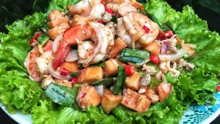 ยำกระท้อนกะทิกุ้งสด รสเด็ด เปรี้ยว หวาน มัน เค็ม เผ็ดนิดๆ