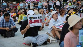 ชาวเกาหลีใต้ประท้วงต่อต้าน การทิ้งน้ปนเปื้อนนิวเคลียร์ของญี่ปุ่น