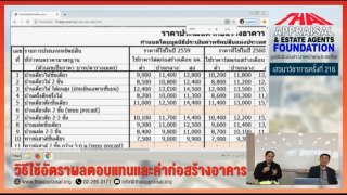 มาเรียนรู้วิธีการใชัอัตราผลตอบแทนในการลงทุนอสังหาริมทรัพย์ และมาตรฐานราคาค่าก่อสร้างอาคารที่มูลนิธิประเมินค่า-นายหน้าแห่งประเทศไทยจัดทำขึ้นสำหรับปี 2563 ดร.โสภณ พรโชคชัย ประธานศูนย์ข้อมูลวิจัยและประเมินค่าอสังหาริมทรัพย์ไทย บจก. เอเจนซี่ ฟอร์ เรียลเอสเตท แอฟแฟร์ส (www.area.co.th) ในฐานะประธานก่อตั้งมูลนิธิประเมินค่า-นายหน้าแห่งประเทศไทย ได้ริเริ่มขึ้นนั้น ใช้อย่างไรสำหรับผู้ประเมินค่าท.. ดูเพิ่ม