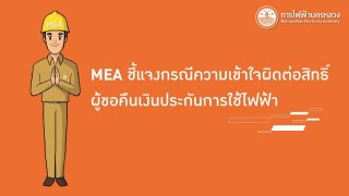 MEA ชี้แจงกรณีความเข้าใจผิดต่อสิทธิ์ผู้ขอคืนเงินประกันการใช้ไฟฟ้า ไม่ส่งผลต่อการทำธุรกรรมใดๆ