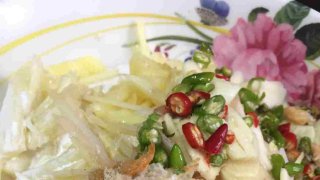 วันนี้มาทำ ขนมจีนซาวน้ำ กินกันครับ วัตถุดิบที่ต้องเตรียมคือ ขนมจีน/พริกขี้หนูซอย/ขิงซอย/มะนาว/กุ้งแห้งป่น/กระทิ/น้ำปลา/สัปปะรด/กระเทียมซอย วิธีการทำ 1.ตักขนมจีนในปริมาณที่พอเหมาะลงในจาน 2.โรยพริกขี้หนูซอยลงไปในปริมาณที่ชอบ 3.โรยขิงซอยลงไป 4.ใส่กุ้งแห้งที่ตำแล้วลงไป ยิ่งใส่เยอะยิ่งอร่อย 5.ใส่สัปปะรดลงไป 6.โรยด้วยกระเทียมซอย 7.เหยาะน้ำปลาแท้สักสามสี่หยด 8.ราดด้วยกระทิสัก 2-3 ทัพพี จากนั้นก็เคล้าให้เ.. ดูเพิ่ม