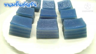 ขนมชั้นอัญชัน สูตรแป้งเหนียวนุ่ม ข้ามวัน หวานมัน อร่อย