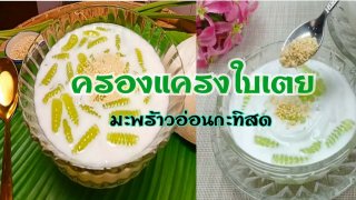 ยามใกล้เที่ยงท้องไส้เริ่มประท้วง น้ำย่อยไหลออกทำงานเรียกอาหาร บีบกระเพาะแสบท้องน่ารำคาญ ถึงมื้ออาหารควรทานตรงเวลา มื้ออาหารของคาวจัดผ่านไป เหตุไฉนปากเรียกหาขนมหวาน อยากกินของหวานอร่อยๆแบบโบราณ ของพร้อมทานสำเร็จรูปขอโบกลา มื้อเที่ยงแดดเปรี้ยงจัดสักหน่อย ขนมหวานรสอร่อยที่ใฝ่ฝัน ของไทยแท้ดั้งเดิมทำมือกัน ช่างหอมหวานเอกลักษณ์ขนมไทย มาวันนี้ของทำครองแครงสด เป็น "ครองแครงใบเตยกะทิสดอร่อยหอม" เพิ่มความลม.. ดูเพิ่ม