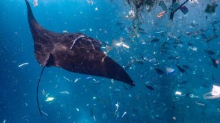 เผยภาพถ่ายอันน่าตกตะลึง! นักดำน้ำพบแพขยะมูลฝอยลอยเกลื่อนทะเล ขณะดำน้ำดูกระเบน