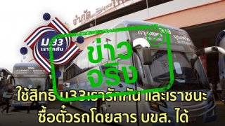 ข่าวจริง ใช้สิทธิ์ ม33เรารักกัน และเราชนะ ซื้อตั๋วรถโดยสาร บขส. ได้