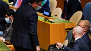 รมว.ต่างประเทศ "ดมิโทร คูเลบา" ของยูเครน กล่าวเรียกร้องให้สมัชชาใหญ่ แห่งองค์การสหประชาชาติ ทำการขัดขวางแผนการที่ก้าวร้าว ของรัสเซียในการบุกโจมตียูเครน "ดมิโทร คูเลบา" กล่าวว่า "ไม่มีโครสามารถนิ่งเฉย ในวิกฤตการณ์เช่นนี้ ถ้าปธน.ปูตินตัดสินใจ ที่จะลงมือตามแผนการ" และ "การเสริมความเข้มแข็งแก่ยูเครน จะทำให้รัสเซียละทิ้งแผนการดังกล่าว" ดูเพิ่ม