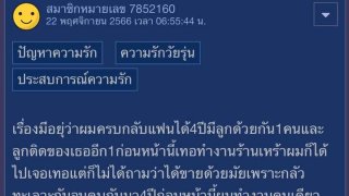 ล่าสุดได้มีพี่ท่านหนึ่งได้มาโพสระบายเรื่องราวที่ได้เจอมากับตัวเอง โดยได้ตั้งหัวข้อว่า "แฟนแอบไปขายยริการ" เขาได้เล่าเรื่องราวว่าดังนี้... เรื่องมีอยุ่ว่าผมครบกลับแฟนได้4ปีมีลูกด้วยกัน1คนและลูกติดของเธออีก1ก่อนหน้านี้เทอทำงานร้านเหร้าผมก็ได้ไปเจอเทอแต่ก็ไม่ได้ถามว่าได้ขายด้วยมัยเพราะกลัวทะเลาะกันจนคบกันมา4ปีก่อนหน้านี้ผมทำงานคนเดียวส่วนเทอเลี่ยงลูกอยุ่ห้องก็อยุ่กันดีรักกันมีความสุขมาตลอดจนกระทั้งเท.. ดูเพิ่ม