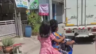 หวาดเสียว เด็กน้อยชาย-หญิง ขี่มอเตอร์ไซค์ออกถนน หวั่นเกิดอุบัติเหตุ
