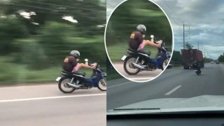 เพจเฟซบุ๊กเฮียขับรถ ได้เผยแพร่คลิปสุดหวาดเสียวขณะเด็กชายและหญิงสองคนพากันขี่มอเตอร์ไซค์บนถนนสาธารณะ ซึ่งเด็กชายเป็นคนขับ ขณะที่เด็กหญิงซ้อนท้าย ด้วยวัยที่ยังเล็กและเด็กมาก อาจทำให้เกิดอันตรายต่อผู้ใช้ถนนร่วมได้ อีกทั้งเด็กแค่นี้ พ่อแม่ปล่อยให้มาขับรถได้ไง โดยโพสต์ดังกล่าวระบุว่า...ทักษะพวกนี้ มันมีแต่กำเนิดหว่ะณร๊องๆ ชมคลิป ดูเพิ่ม