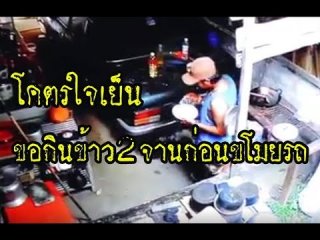 โครตใจเย็น...วงจรปิดจับชัดคนร้ายกินข้าว 2 จานก่อนขโมยรถ