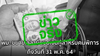 ข่าวจริง พม. ขยายเวลายื่นขอเงินกู้สำหรับคนพิการ ถึงวันที่ 31 พ.ค. 64