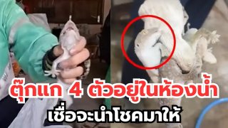 เซอร์ไพรส์เจอตุ๊กแก 4 ตัวอยู่ในห้องน้ำ เชื่อจะนำโชคมาให้