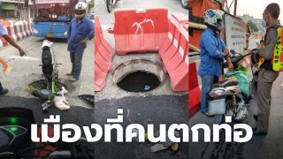 คนตกท่อ 2021 หนุ่มเจ็บ ฝาท่อชำรุด จยย.หน้าทิ่ม