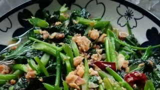 ผัดผักไชยากับปลาอินทรีย์เค็ม