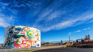 เติมน้ำมันให้ฉันสักครั้งอัปยศคุณเติมเชื้อเพลิงให้ฉันสองครั้งและคุณจะต้องทาสีถังเก็บขนาดใหญ่เหล่านี้ คุณสามารถเดิมพันได้ว่าฟาร์มถังสร้างสรรค์เหล่านี้จะเติมเชื้อเพลิงให้กับทุกคน ถังเก็บเชื้อเพลิงขนาดมหึมาที่บรรจุในฟาร์มถังหลายแห่งของโลกมักจะทาสีแม้ว่าจะไม่สร้างสรรค์ก็ตาม สีขาวเป็นสีที่ต้องการ: คุณไม่ต้องการให้ถังที่เต็มไปด้วยเชื้อเพลิงไวไฟจำนวนมากเพื่อทำให้ร้อนขึ้นในวันฤดูร้อนที่มีแดดจัด อย่างไรก็ต.. ดูเพิ่ม