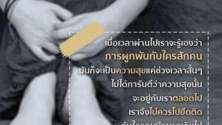 เมื่อเวลาผ่านไปเราจะรู้เองว่า การผูกพันกับใครสักคนมันก็จะเป็นความสุขแค่ช่วงเวลาสั้นๆของชีวิตแต่มันไม่ใช่ความสุข ที่จะคงอยู่กับเราตลอดไป จริงๆมีหลายคู่ที่คบกันมายาวนานถึง 10 ปี แต่ก็ไม่เห็นตัดสินใจจะแต่งงานกันเลย อาจเป็นเพราะพวกเขาทั้งคู่ต่างรู้ดีว่าเขาทั้งคู่อาจจะไม่ได้รักกันจริงๆถึงขั้นอยากจะใช้ชีวิตคู่อยู่ร่วมกันหรอก แต่ที่เขายังคบกันมานานถึง 10 ปี นั้นมันเป็นเพราะ "ความผูกพัน" ต่างหาก .. ดูเพิ่ม
