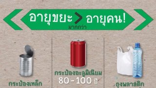 ทายซิว่า...ระยะเวลาย่อยขวดพลาสติกใช้เวลากี่ปี กระป๋องเหล็กกี่ปี โฟมกี่ปี ??? ดูเพิ่ม