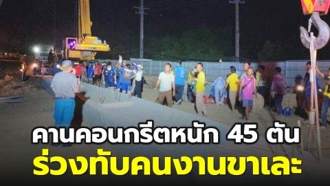 คานคอนกรีตหนัก 45 ตัน สร้างสะพานข้ามแยก ร่วงทับคนงานขาเละ
