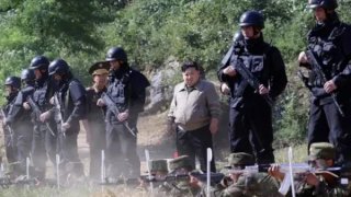 บอดี้การ์ด "คิมจองอึน" แต่งตัวเต็มยศถือปืนกล แสดงถึงวาระซ่อนเร้นบางอย่าง