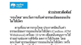 ล่าสุดทาง ธนาคารกรุงไทย ยอมถอย.!! ออกประกาศใหม่ แจ้งยกเว้นการเก็บค่าธรรมเนียมถอนเงินไม่ใช้บัตร จากที่ก่อนหน้านี้ประกาศจัดเก็บค่าธรรมเนียมการถอนเงินไม่ใช้บัตร (Cardless ATM Withdrawal) ครั้งละ 10 บาท เพื่อสนับสนุนการใช้จ่ายผ่านช่องทางดิจิทัล ลดการใช้เงินสด ถือเป็นเรื่องราวที่ ทำเอา ผู้คนจำนวนมาก ต่าง ไม่พอใจเป็นอย่างมาก กับการที่เรียกเก็บค่าธรรมเนียม ดูเพิ่ม