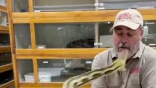 งูหลามตัวใหญ่กัดหน้าคนเลี้ยง เหตุพยายามย้ายไข่ของมัน