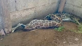 ผงะ!เจองูหลามตัวยักษ์ กินไก่ไปสองตัว