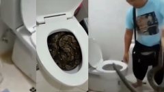สยองหว่างขา งูเหลือมยาว 3 เมตรขดอยู่ในชักโครก