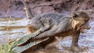 ลูกลิงเจอจระเข้รุมงับต่อหน้าฝูง ดราม่ากลางซาวโว เคนยา ที่ครูฝรั่งเศสถ่ายไว้ได้