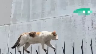 เปิดคลิปนาทีแมวจอมยุทธ..ไต่กำแพงเหล็กแหลม สุดยอดมากๆ😃