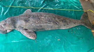 พบซากพะยูนลอยติดซอกหินใกล้ท่าเทียบเรือบ่อม่วง น้ำหนักกว่า 300 กก.