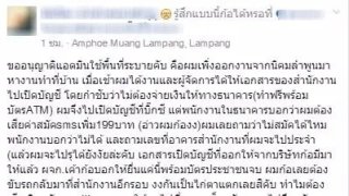 หนุ่มลำปางเริ่มงานใหม่ หัวหน้าให้ไปเปิดบัญชีเงินเดือนและให้เอกสารของสำนักงานไปเปิดบัญชีพร้อมกำชับว่า "ไม่ต้องจ่ายเงินให้ทางธนาคาร(ทำฟรีพร้อมบัตรATM)" แต่พนักงานบอกต้องเสียค่าสมัคsmsเพิ่ม199บาท ถึงจะเปิดบัญชีได้ ละเอียดเนื้อหาดังนี้ "ขออนุญาติ...ใช้พื้นที่ระบายคับ คือผมเพิ่งออกงานจากนิคมลำพูนมาหางานทำที่บ้าน เมื่อเช้าผมได้งานและผู้จัดการได้ให้เอกสารของสำนักงานไปเปิดบัญชี โดยกำชับว่าไม่ต้องจ่ายเงินใ.. ดูเพิ่ม