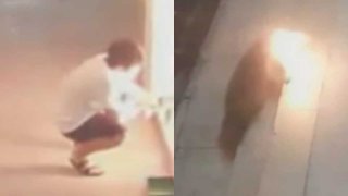 ชายจีนสุดโหดใช้เครื่องพ่นไฟเผาชู้กลางถนน