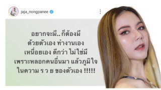 เอาแล้ว “จ๊ะ นงผณี” ฝากไว้ให้คิด อย่ามี ! เพราะหลอกคนอื่นมาต่อมเผือกกระตุก ! นักร้องสาว จ๊ะนงผณี ฟาดแรงโพสต์ข้อความฝากไว้ให้คิดว่า "อยากจะมี ก็ต้องมีด้วยตัวเอง ทำงานเองดีกว่า ไม่ใช่มีเพราะหลอกคนอื่นมาแล้วภูมิใจในความรวย ของตัวเอง!" นอกจากนี้ "จ๊ะ" ยังโพสต์ข้อความในเฟซบุ๊กว่า "ภูมิใจกับละอายมันต่างกันนะ คิดให้ได้อย่าสบาย บนความเดือดร้อนของคนอื่น สงสารคนที่ตั้งใจทำมาหากิน สุดท้ายก็มาหลอ.. ดูเพิ่ม