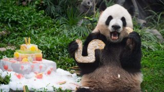 เมื่อวันที่ 26 มิถุนายน 2021 พี่น้องแพนด้าแฝด แพนด้ายักษ์ "คังคัง" และ "เจียนเจียน" กำลังกินเค้กวันเกิด ในสวนสัตว์เขตมาเก๊า ทางตอนใต้ของประเทศจีน เนื่องจากเป็นวันเกิด ครบ 5 ขวบ เจ้าหน้าที่เลยนำเค้กมาเลี้ยงฉลอง ให้กับแพนด้าแฝดคู่นี้ และ ก็มีผู้คนที่มาเที่ยวสวนสัตว์ ต่างก็ร่วมฉลองกับพวกมันด้วย!! ดูเพิ่ม