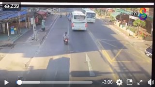 รวบตัวคนขับตีนผีเฉี่ยวชนรถจักรยานยนต์ ล้มทับร่างดับ ภาพจากกล้องวงจรปิดบริเวณสามแยกโพธิสาร ตำบลนาเกลือ อำเภอบางละมุง จังหวัดชลบุรี แสดงให้เห็นรถบัสโดยสารสีขาวคันหนึ่งวิ่งมาด้วยความเร็วอยู่ในเลนขวา พอดีกับที่ นายขจรศักดิ์ สารบุญ อายุ 25 ปี ขี่รถจักรยานยนต์วิ่งอยู่เลนซ้ายขนานกันมา แล้วกำลังจะแซงรถเก๋งที่อยู่ข้างหน้า ทำให้ถูกรถบัสเฉี่ยวชนจนล้มก่อนจะเหยียบร่างซ้ำ สภาพนอนคว่ำกะโหลกศรีษะบี้แบนไปกับพื้นถ.. ดูเพิ่ม